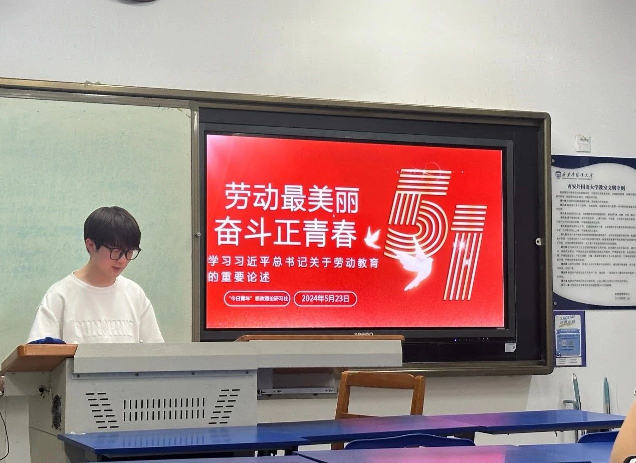 为深入学习习近平总书记关于劳动教育的重要论述,2024年5月23日,“今日青年”思政理论研习社开展“劳动最美丽,奋斗正青春”的主题学习活动。本次活动由团支书贾天宇主持,社团成员积极参加。