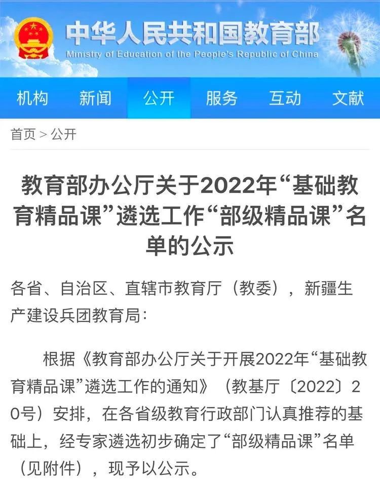 根据教育部办公厅《关于开展2022年“基础教育精品课”遴选工作的通知》(教基厅〔2022〕20号)文件安排,经各级专家的遴选,鸭奈飞