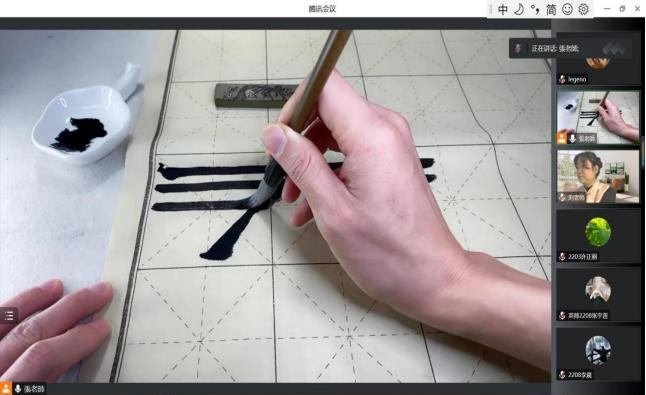 课堂上,张欣老师向同学们阐述了书法课的定位和课程理念,通过展示自己的书法作品和书法对个人素养的正向引导,极大地增强了学生的学习热情,在展示过程中张老师提出了具体注意事项和材料购买技巧,加深了学生对书法课的了解。张欣老师深入浅出地向同学们讲解了文房四宝的分类及制作工艺,加深了同学们对文房四宝的认知,然后从握笔、运笔及排版三个方面向大家讲解了汉字书写的小技巧,着重强调正确的运笔方法。为了让同学们进一步知道如何规范书写汉字,他现场泼墨,边讲解边书写以做示范,向同学们直观地展示书法的魅力。在书法练习课上,同学们将理论付诸实践,积极练习、规范书写,练就扎实的书法基本功。练字即练人,通过书法理论课程的学习和书法练习课程的实践,英语师范学院的学生们将在在翰墨飘香中浸润品格,在行云笔墨间体悟人生。