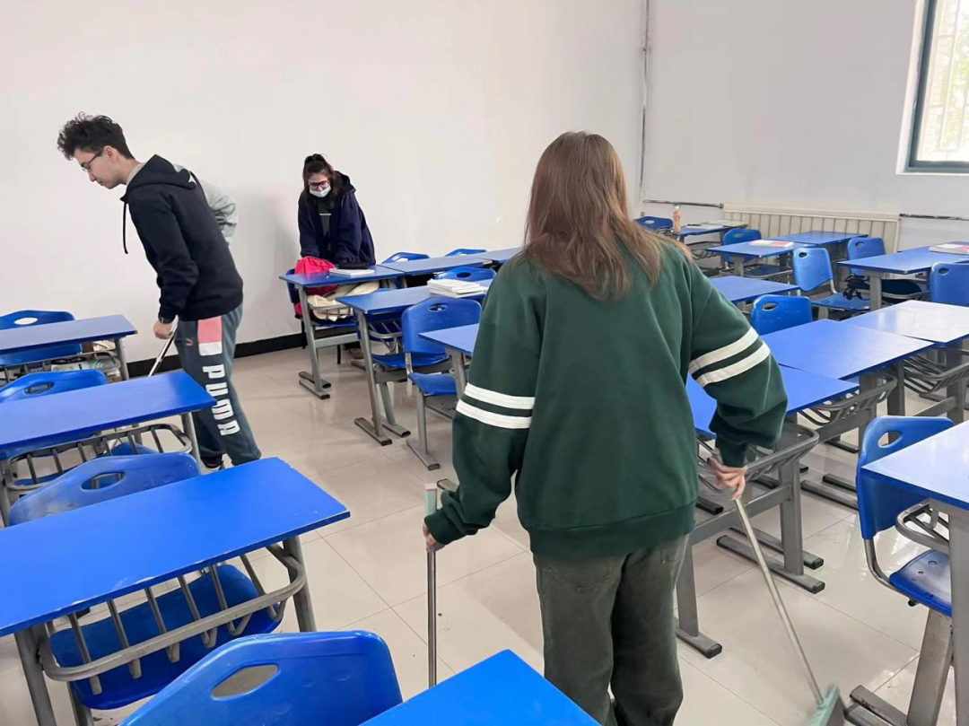 为确保师生在校的健康和安全,少数民族预科班全体学生对固定教室进行预防性清洁消毒、彻底大扫除,对桌椅、写字板等进行擦拭消毒,不放过每一个死角,为师生创设一个整洁卫生的学习环境。
