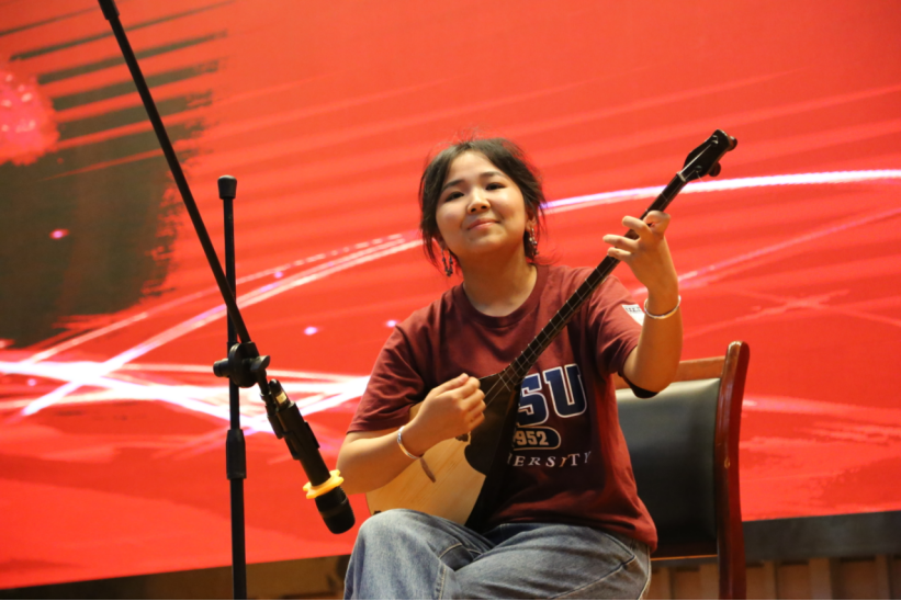 最后是2022级预科班学生的风采展示。少数民族预科班作为一个包含多元中华优秀传统文化的整体,在结业典礼上,来自不同民族的同学们为观众展演了具有多样风情的歌舞、演奏、朗诵等精彩节目,会场气氛热烈,参会师生兴致高涨,热情洋溢。