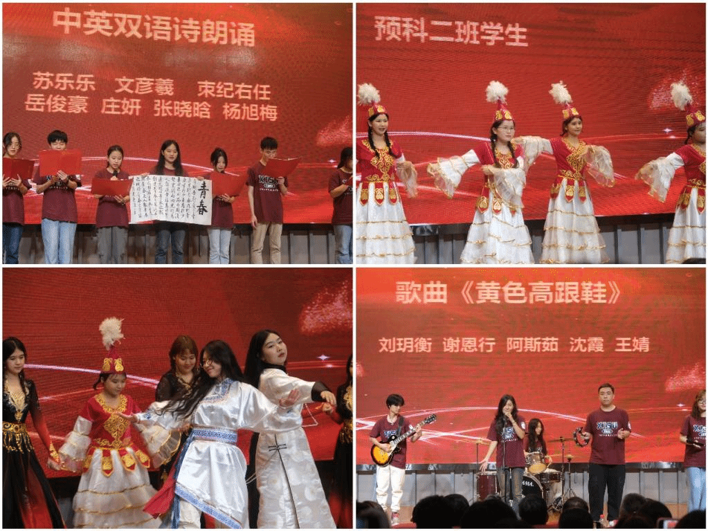 最后是2023级预科班新生的风采展示。来自不同民族的同学为与会师生展示了双语诗朗诵、书法、民族舞串烧、歌曲演唱等精彩节目,会场气氛热烈,青春洋溢,掌声阵阵。