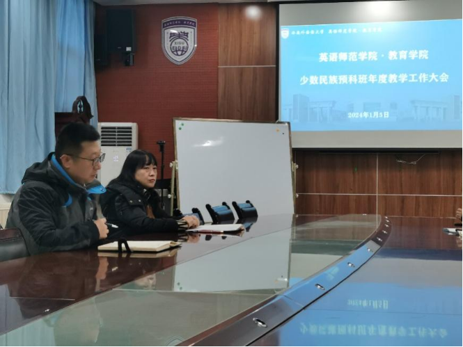 1月5日13:00在H107会议室召开了少数民族预科班年度教学工作大会。学院党委书记姚玮,副院长李锐及少数民族预科班全体教师参加会议,会议由李锐主持。