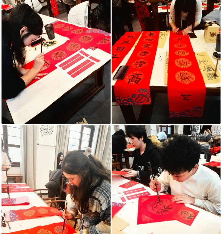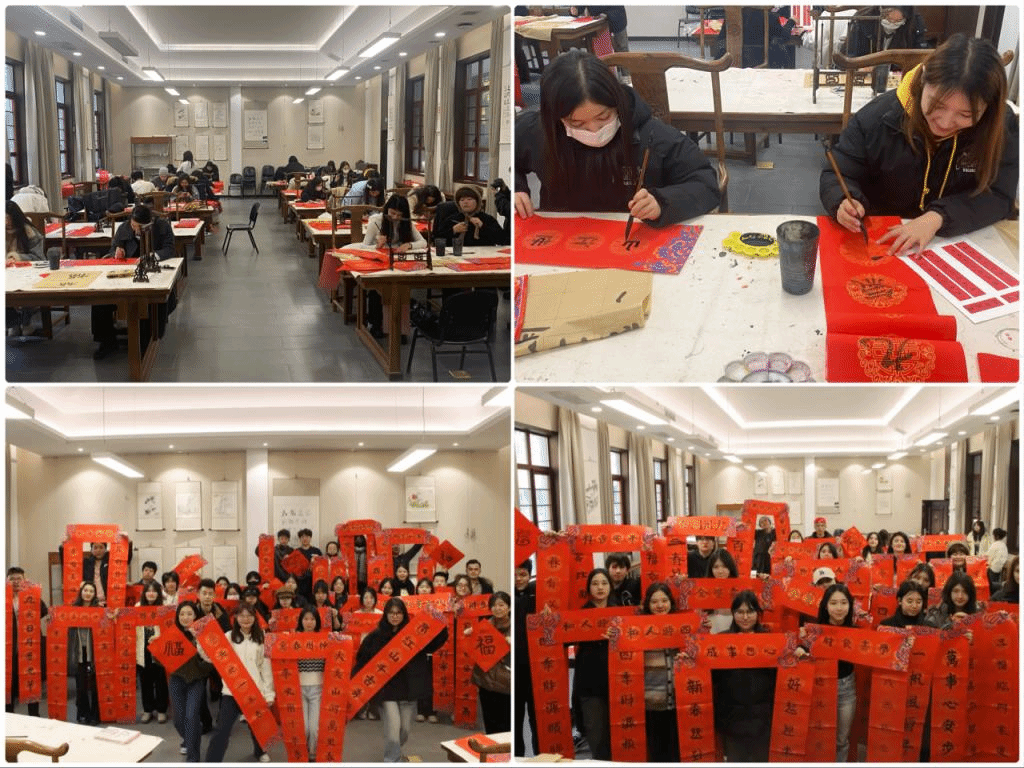 春联是中国传统文化的一个重要代表,它以对仗工整、简洁精巧的文字描绘美好形象,抒发美好愿望,是中国特有的文学形式。在张欣老师的带领下,同学们热情挥毫泼墨,一幅幅笔法精湛,饱含浓浓喜庆祥和气息的对联和“福”字跃然纸上,一笔一墨、一横一竖、一撇一捺……写的是汉字,报的是节讯,暖的是人心。师生脸上洋溢着幸福的笑容,红红火火的春联散发着清新的墨香,传递着浓浓的温暖和祝福。