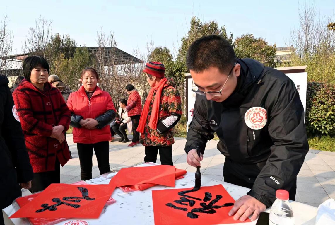 为认真贯彻落实习近平总书记关于妇女儿童和妇联工作重要论述、来陕考察重要讲话重要指示精神,西安市妇联在2024年全新推出“古都家话”工作品牌,积极发动各级妇联组织、妇联干部、妇联执委、三八红旗手、巾帼建功标兵、最美家庭、巾帼志愿者、社会组织等,在全市深入开展万名娘家人走基层送温暖活动,并在新春佳节来临之际,由西安市妇联主席带头走基层、进家门、聊家话,写春联、送福字、拍全家福、包饺子,用心用情走访慰问和情感交流。1月12日下午,在位于秦岭山下西尧村家风家训公园,书法家们和预科生马承,挥毫泼墨,为乡亲们义务写春联、福字和家风家训。乡亲们纷纷走出家门聚拢在一起,你要一副春联,我要一张福字,现场十分热闹,秦岭山下的小山村洋溢着过年般的喜庆氛围。村民孙香萍说:“妇联组织的这次送温暖活动很接底气,老人就不用去街上买对联了,书法家们现场这手写的春联比印刷的有意义,贴到家里里里外外红红火火地迎接新春!” 随后,预科生马承随西安市妇联领导一行走访家庭,送福字、送春联,传递新年美好祝福。