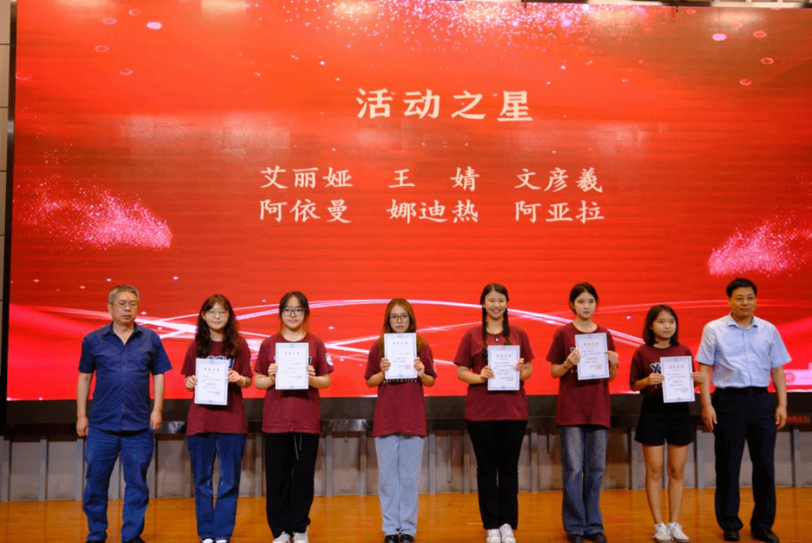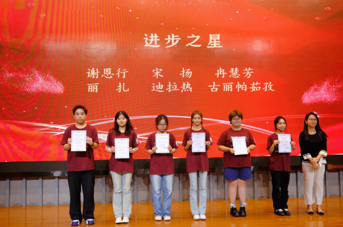 2023级学生代表麦尔哈巴·阿地力回顾了自己一年来丰富多彩的预科成长历程,对老师们的辛勤付出和同学们的无私帮助表达了诚挚的感激之情。她鼓励同学们带着预科的收获奔赴本科新的起点,怀揣梦想,不断超越自我,成就更优秀的自我。