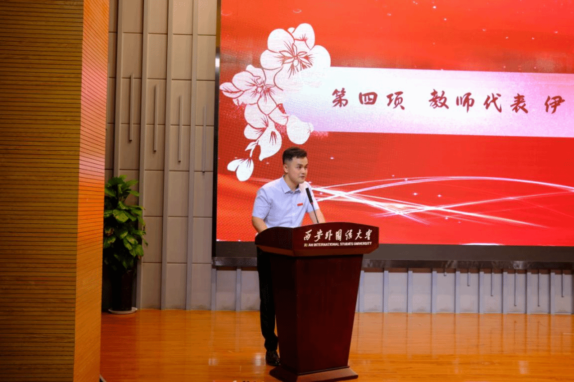 少数民族预科班辅导员伊力哈木作为教师代表发言,通过切身经历感受到正是由于学校党委和各级领导对预科教育的大力支持,少数民族预科生才能德智体美劳全面成长,他们朝气蓬勃,积极向上,真正融入到西外的大家庭中。他表示结业典礼是新征程的开始,鼓励预科生们能在未来的本科学习生活中继续保持优良学风,追求卓越,实现个人价值。