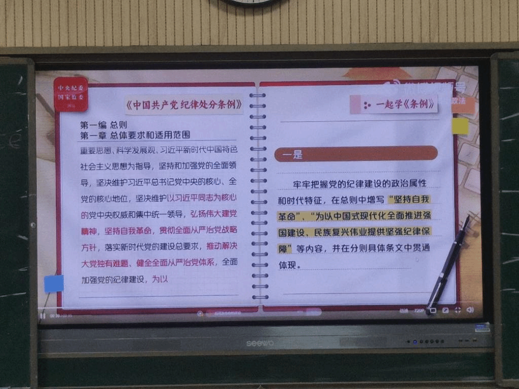 随后,在集体学习环节,全体参会成员共同观看了“一起学《中国共产党纪律处分条例》”系列视频之严明政治纪律和政治规矩。视频中详细解读了纪律处分条例的相关内容,强调了严明政治纪律和政治规矩的重要性,以及如何在实际工作中落实这些纪律要求。观看视频后,参会成员对视频学习内容进行了交流分享,大家表示,通过学习纪律处分条例,对党的纪律处分条例有了更加深入的理解,也更加明白了作为一名党员在遵守纪律方面的责任。各位参会成员表示,今后将把纪律要求内化于心、外化于行,严格遵守党的纪律规定,以更高标准要求自己,为学院党建工作贡献力量。